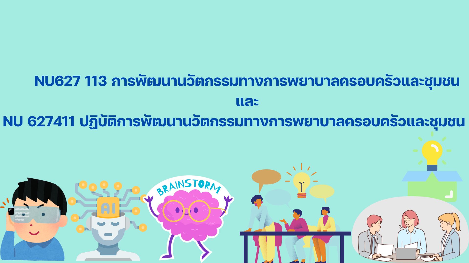 แนวคิดนวัตกรรมและนวัตกรรมทางการพยาบาล ทักษะสำคัญในการพัฒนานวัตกรรม การคิดสร้างสรรค์ การคิดเชิงระบบ การคิดอย่างมีวิจารณญาณ กระบวนการพัฒนานวัตกรรม การประเมินความต้องการพัฒนานวัตกรรม วิธีการออกแบบและการพัฒนานวัตกรรม การนำใช้นวัตกรรมในการปฏิบัติการพยาบาลชุมชน การประเมินค่านวัตกรรมและเทคโนโลยีทางการพยาบาลชุมชน