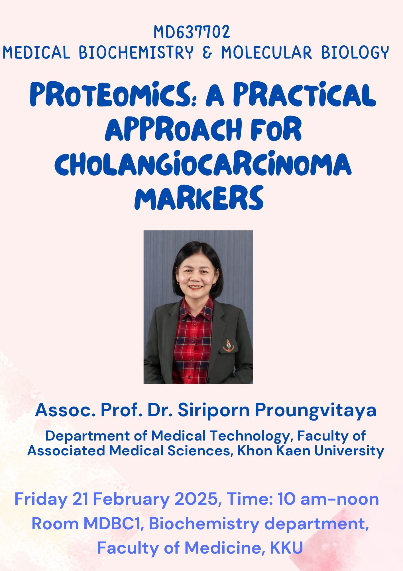 21 Feb 2025 Assoc.Prof.Dr.Siriporn  Proungvitaya, Department of Medical Technology, Faculty of Associated Medical Sciences, KKU