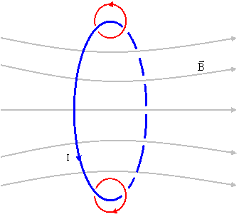 เมื่อมีกระแสไฟฟ้า I ไหลในวงจร จะเกิดสนามแม่เหล็ก