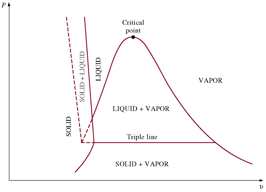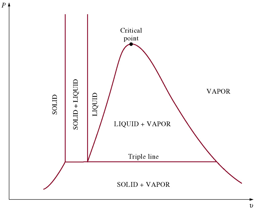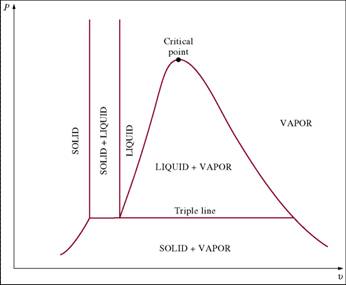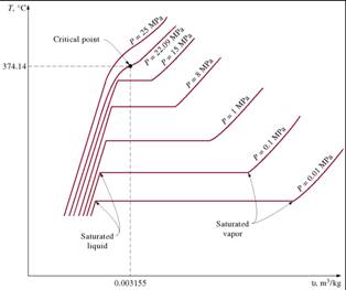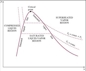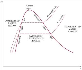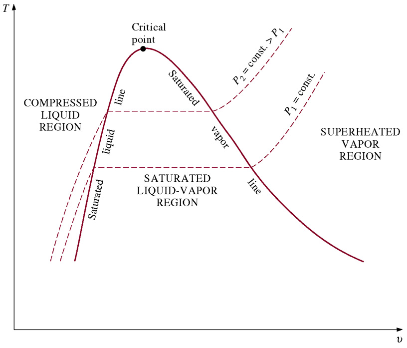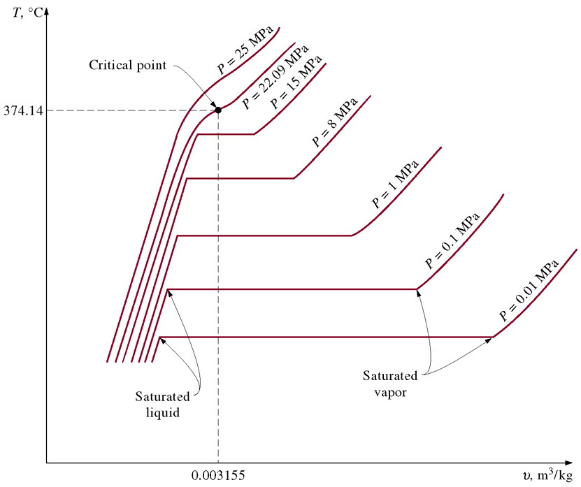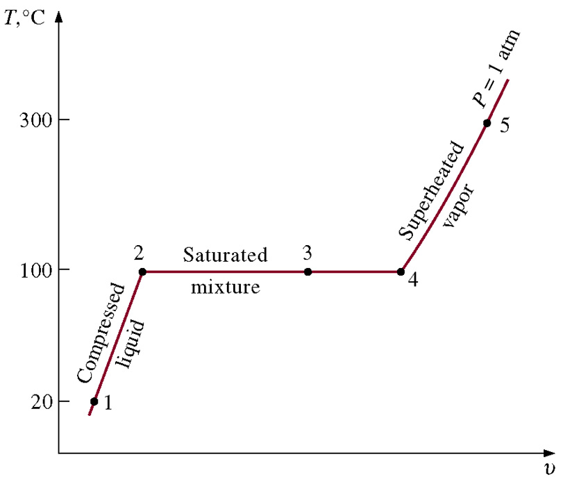 - T-v diagram for the heating process of water at constant pressure.