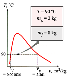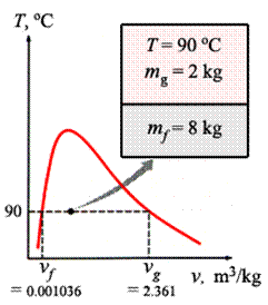 - A rigid tank contains 10 kg of water at 90 °C. If 8 kg of the water is in the liquid form and