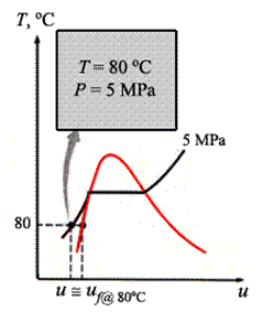 - Determine the internal energy of compressed liquid water at 80°C and 5 MPa, using