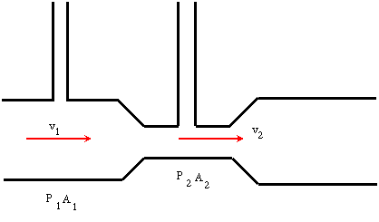 เวนจูรีมิเตอร์เป็นเครื่องวัดความเร็วของของไหลที่ไหลภายในทอ มีลักษณะดังรูป จากสมการแห่งความต่อเนื่อง คือ