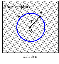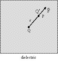 Q ซึ่งจมอยู่ในไดอิเลกตริกที่มีค่าคงที่ไดอิเลกตริกเท่ากับ