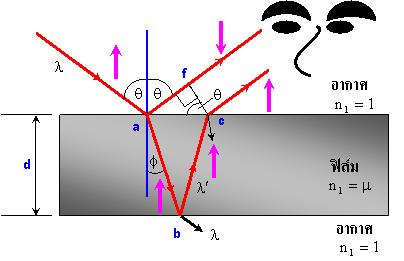 เนื่องจากเฟสของแสงมีการเปลี่ยนแปลงดังรูป ดังนั้นการแทรกสอดแบบเสริมกัน