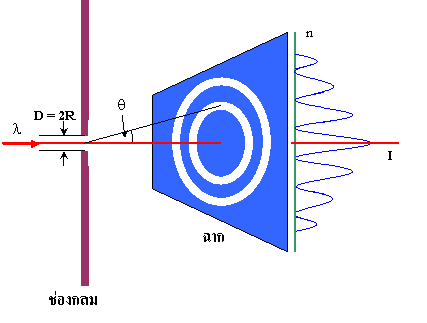 ลวดลายการเลี้ยวเบนจะเป็นริ้ววงกลมตรงกลางสว่าง