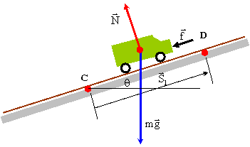 รถคันนี้จะเคลื่อนที่ถอยหลังกลับลงมาตามพื้นเอียงและหยุดที่จุด E