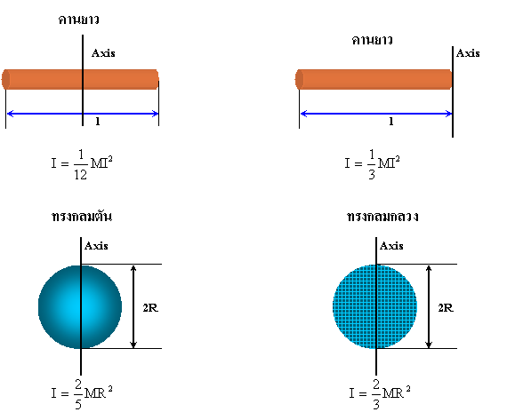 โมเมนต์ของความเฉื่อยของวัตถุรูปร่างต่าง ๆ