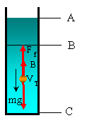 ลูกกลมจะตกลงไปในของเหลวผ่านระดับ B ถึงระดับ