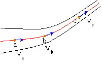 ถ้าทุก ๆ ส่วนของของไหลที่ผ่านจุด a, b และ