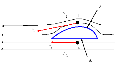 อากาศบริเวณผิวด้านบนมีความเร็วสูงกว่าอากาศบริเวณผิวด้านล่าง นั่นคือ