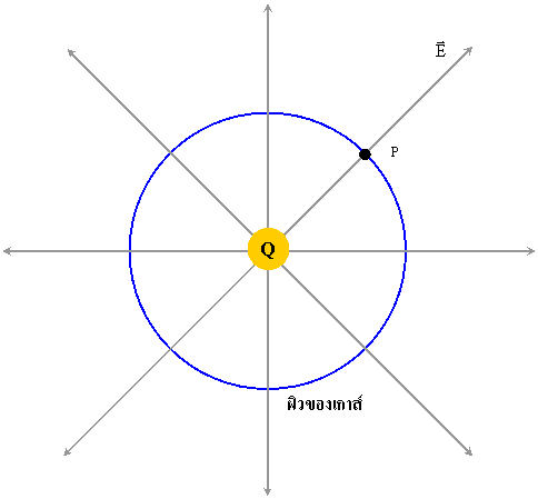 สร้างผิวของเกาส์เป็นรูปทรงกลมโดยให้จุด P