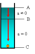 ลูกกลมจะตกลงไปในของเหลวผ่านระดับ B ถึงระดับ