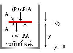 แรงดันลงของผิวบน คือ (P+dP)A