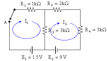 E1 = I1R1+(I1 - I2)R2 ------------------------------------ (1)