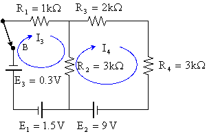 E3 = I3R1+(I3 - I4)R2 ------------------------------- (6)