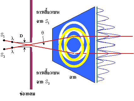 สองจุด แล้วเกิดลวดลายการเลี้ยวเบนที่เห็นแยกกัน