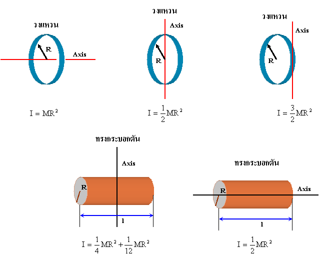โมเมนต์ของความเฉื่อยของวัตถุรูปร่างต่าง ๆ