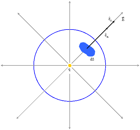 r เป็นทรงกลมสมมุติ เรียกว่า ผิวของเกาส์
