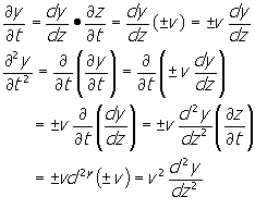 รายของสมการ(28)คือ y(x,t) = ƒ1(x-vt)+ƒ1(x+vt)-----------(29)
