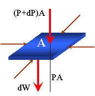 แรงดันลงของผิวบน คือ (P+dP)A
