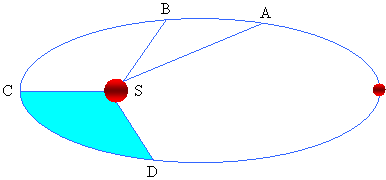 2.  ความเร็วของดาวเคราะห์ที่เคลื่อนที่ไปตามวงโคจรมีผลทำให้เวกเตอร์รัศมีจากดวงอาทิตย์ไปยังดาวเคราะห์ผ่านพื้นที่ได้เท่า ๆ กัน ภาย